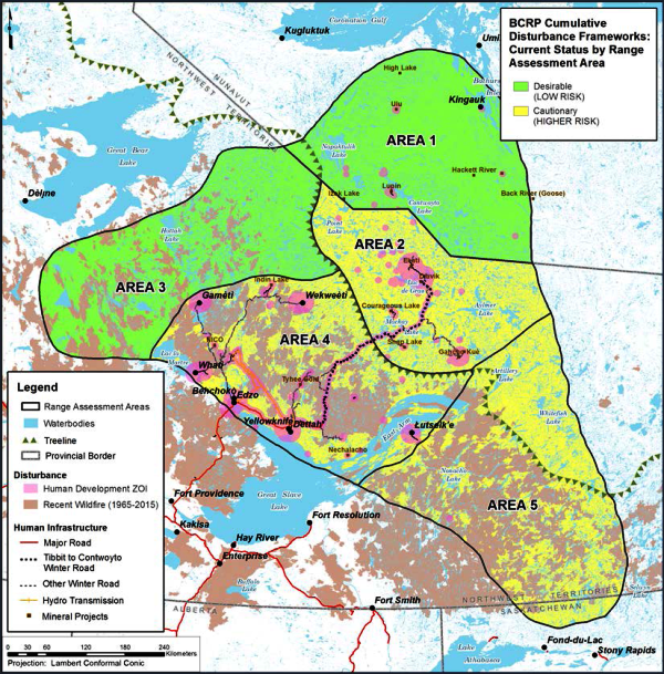 Cumulative disturbance framework current status by range assessment area - from Bathurst Caribou Range Plan Interim Discussion Document, GNWT