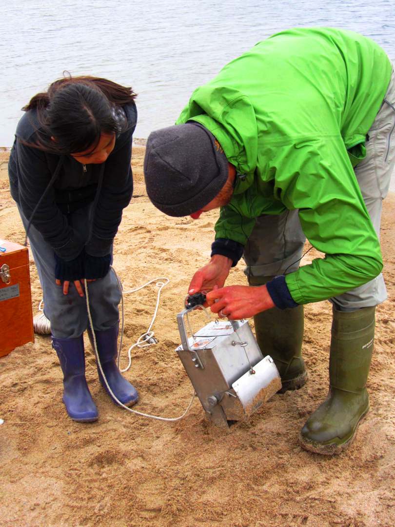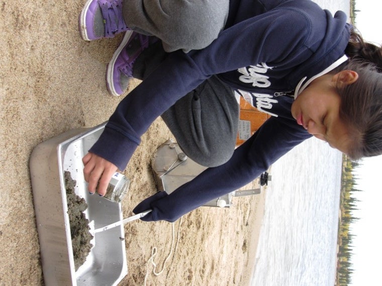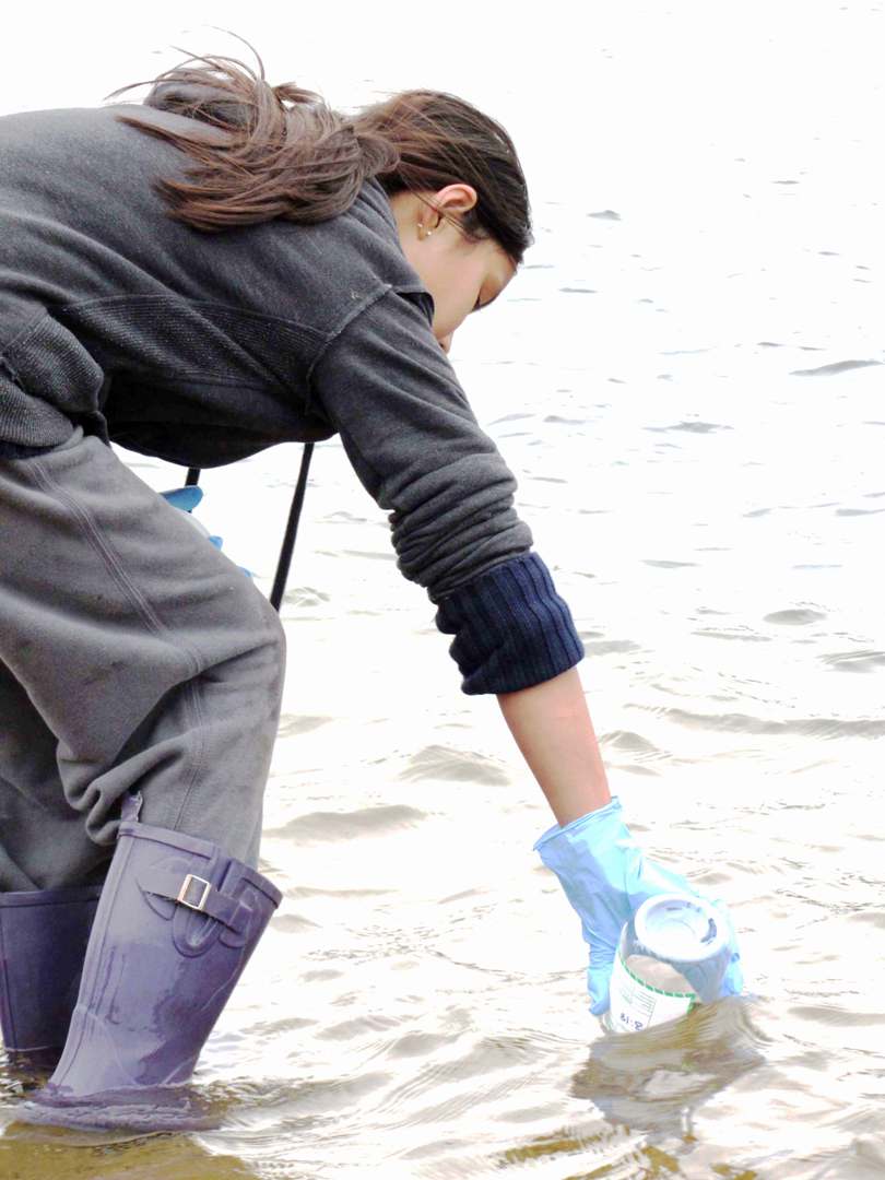 The biologists showed participants how to sample water to measure how cloudy the water was, the amount of solid matter suspended or dissolved in the water, the amount of oxygen dissolved in the water, nutrients and metals. They also took sediment samples to look for any trace metals. Each of these measures has a story to tell. For example, water temperature affects the health and survival of aquatic life. Significant changes in temperature can affect their ability to grow, reproduce, escape predators, and complete for habitat. Contaminants such as mercury can have long-term, chronic effects that may reduce growth rate or reproduction. Some contaminants can be detected in water; others, though, tend to stick to sediments found in the water or lake bottom. To get the most complete picture, participants sampled both the water and sediments for contaminants.