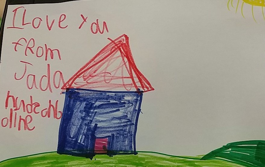 Jada, one of the students at Alexis Arrowmaker School made drawings for Tanya and Shalyn to say thank you for coming in to speak with them. This is what she made for Shalyn. Photo credit: Shalyn Norrish, WRRB & WLWB.