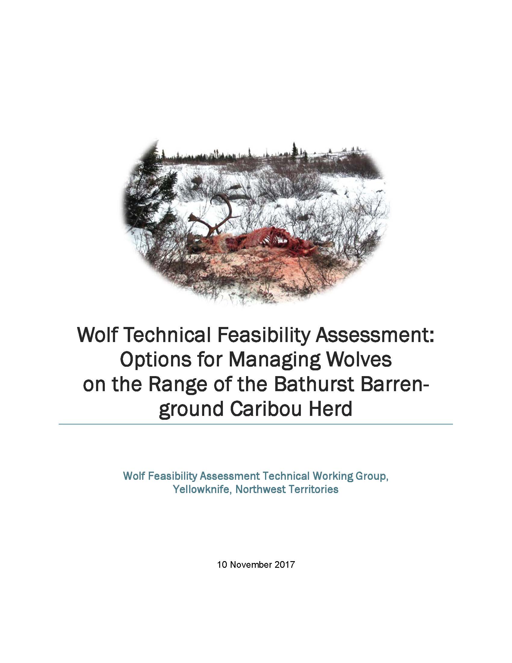 The Wolf Technical Feasibility Assessment: Options for Managing Wolves on the Range of the Bathurst Barren-ground Caribou Herd was completed collaboratively by the Wolf Feasibility Assessment Technical Working Group, which was formed to compile information about wolf management options and risks. The assessment was done to fulfill commitments made by ENR to conduct a collaborative feasibility assessment of wolf management options for the range of the Bathurst herd, including areas within and outside of Wek’èezhìı.