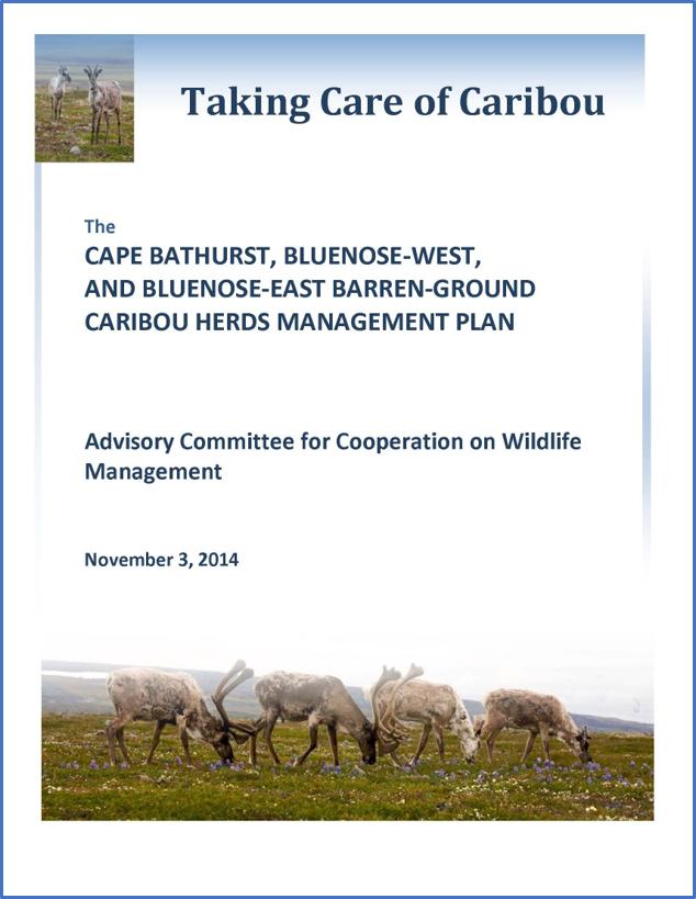 The Advisory Committee for Cooperation on Wildlife Management (ACCWM) was created for the purposes of sharing information, offer cooperation and build consensus, as well as offer recommendations regarding issues that surround wildlife and their habitat which cross treaty boundaries and land claims. The ACCWM has developed the “Taking Care of Caribou: the Cape Bathurst, Bluenose-West, and Bluenose-East Barren-ground Caribou Herds Management Plan” with the intention of addressing management of caribou and stewardship now and in the future. The statuses of each of the herds are reassessed on a yearly basis indicating whether they are yellow (population level is intermediate and increasing), green (population level is high), orange (population level is intermediate and decreasing), or red (population level is low). In November 2019, the ACCWM met and reviewed all available community-based monitoring and scientific information. Proposed statuses for each herd were made and are pending final decision. Individual action plans that are based on the herd statuses will identify specific management actions for each herd and will be submitted to governments in February 2020.
